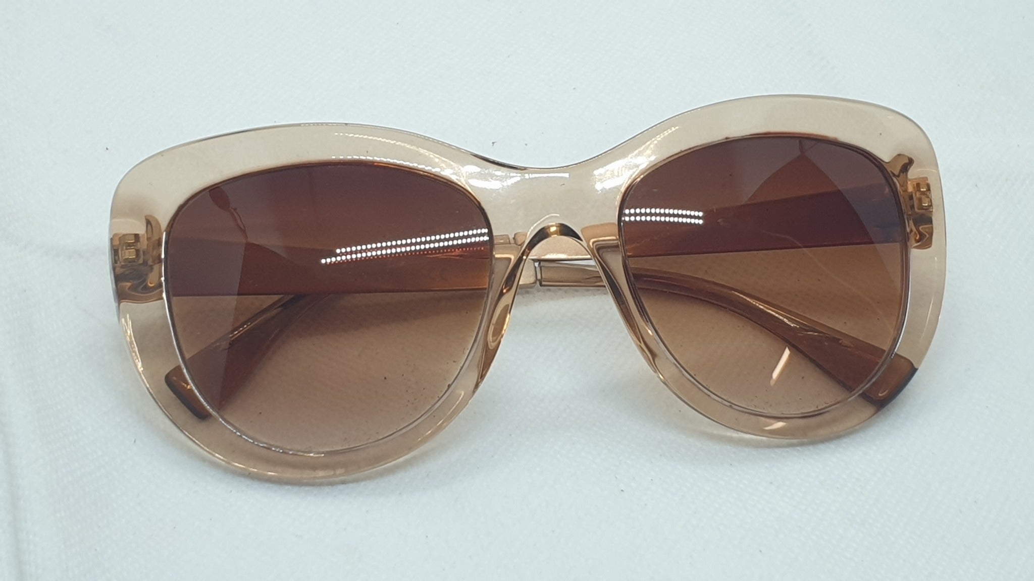The sunglasses are in overall good pre owned condition with no major scratches or marks. However, as this is a pre-owned item, please expect some minor wear, including light marks and scratches, which are clearly visible in the provided pictures.
